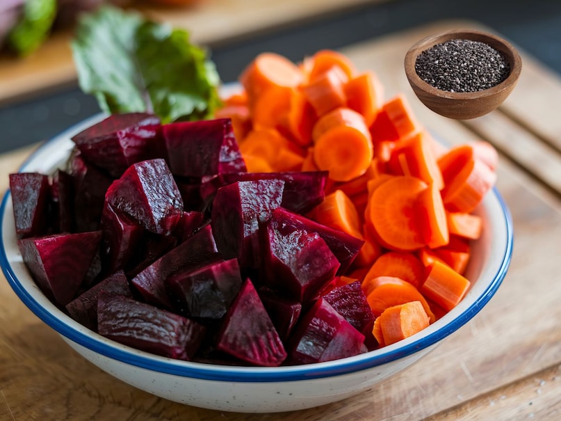 सातवीं और अंतिम चीज है चुकंदर महिलाओं में खून की कमी आम होती है इसलिए रक्त बढ़ाने वाली सब्जियों और फलों का सेवन बहुत जरूरी है चुकंदर की रोटी, रायता या सलाद के रूप में रोजाना आहार में लिया जा सकता है यह शरीर में ऊर्जा बनाए रखने और कमजोरी दूर करने में भी मदद करता है.