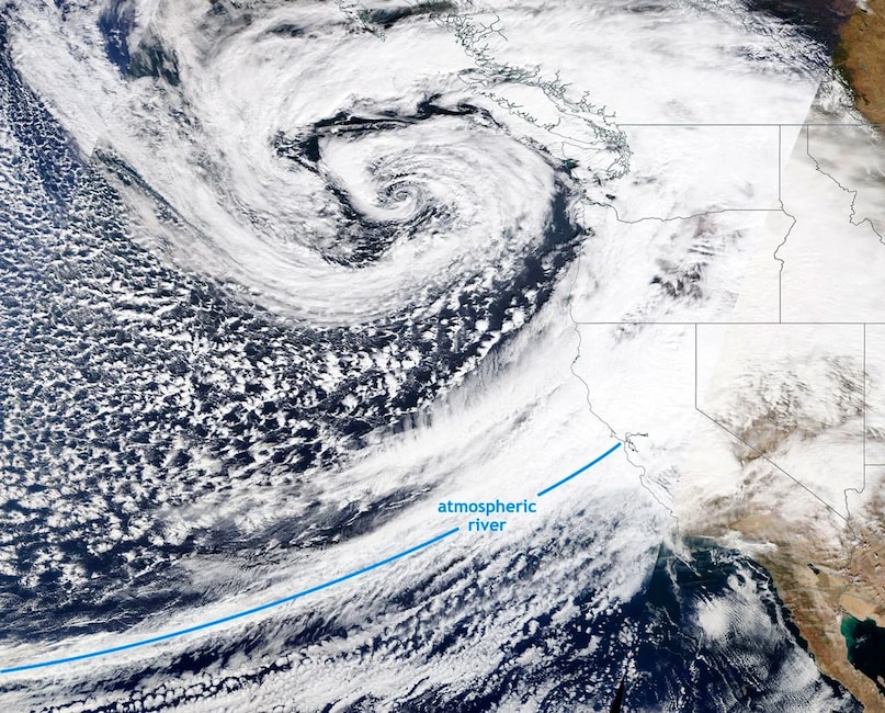 ARkStorm का तकनीकी अर्थ है ‘एटमॉस्फेरिक रिवर 1,000-ईयर स्टॉर्म’. यह एक काल्पनिक लेकिन वैज्ञानिक रूप से पूरी तरह मुमकिन मेगास्टॉर्म सिनेरियो है. इसे समझने के लिए हमें सबसे पहले ‘एटमॉस्फेरिक रिवर्स’ को समझना होगा. ये वास्तव में आसमान में बहने वाली विशाल नदियां हैं, जो पानी की भाप के रूप में नमी को उष्णकटिबंधीय क्षेत्रों से ध्रुवों की ओर ले जाती हैं. जब ये नमी से भरी हवाएं जमीन या ऊंचे पहाड़ों से टकराती हैं, तो यह भाप ठंडी होकर भारी बारिश या बर्फबारी के रूप में नीचे गिरती है. कैलिफोर्निया में इसे अक्सर ‘पाइनएप्पल एक्सप्रेस’ के नाम से भी जाना जाता है, जो हवाई के पास से नमी लेकर आती है. (File Photo : NOAA)