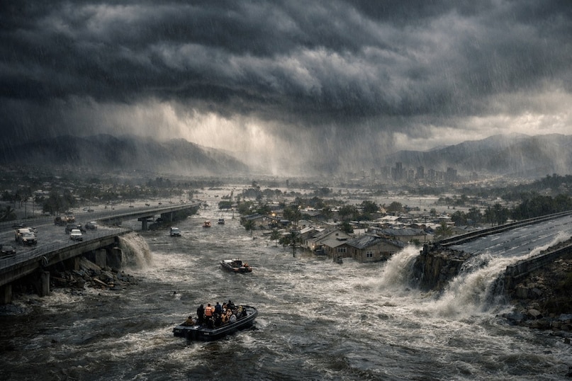 California Megaflood Risk: अमेरिका के कैलिफोर्निया पर एक ऐसी महाप्रलय का खतरा मंडरा रहा है, जिसे वैज्ञानिक ‘बिब्लिकल मेगाफ्लड’ कह रहे हैं. यानी ऐसी महाबाढ़ जिसका जिक्र बाइबिल में किया गया है. ‘ARkStorm 2.0’ नाम का यह संकट 30 दिनों तक चलने वाले तूफानों का एक सिलसिला है, जो पूरे राज्य को जलमग्न कर सकता है. ग्लोबल वार्मिंग की वजह से इसकी आशंका अब दोगुनी हो गई है. विशेषज्ञों के मुताबिक, इससे 1 ट्रिलियन डॉलर से अधिक का आर्थिक नुकसान और लाखों लोगों का विस्थापन हो सकता है. क्या दुनिया की चौथी सबसे बड़ी अर्थव्यवस्था इस आसन्न विनाश से निपटने के लिए तैयार है?